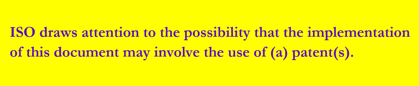 ISO draws attention to the possibility that the implementation of this document may involve the use of (a) patent(s).