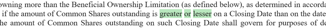 In other words, the word greater works in both contexts. But lesser doesn’t work in the second context. One doesn’t say lesser than; you say less than. Nevertheless, today I encountered this ungrammatical use of greater or lesser in a contract I was asked to review, and I found more than 1,700 examples on EDGAR. And I found a bunch more examples of lesser than on its own, without greater. So this ungrammatical use of lesser than would seem to be a thing.