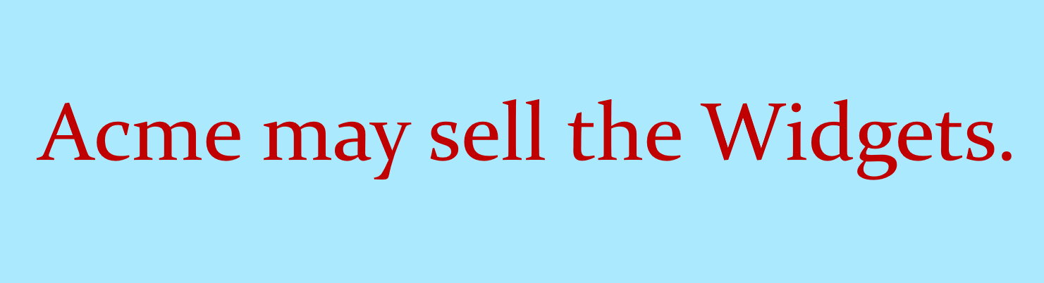 That suggests that if you want to express the second meaning—that Acme is asserting the fact that nothing in the world at large prevents Acme from selling the widgets—the burden is on you to make that meaning clear. Here’s how you do that: Acme states that it may sell the Widgets. (No, we’re not getting into states here. If you’re curious about that, go read this 2015 article.)